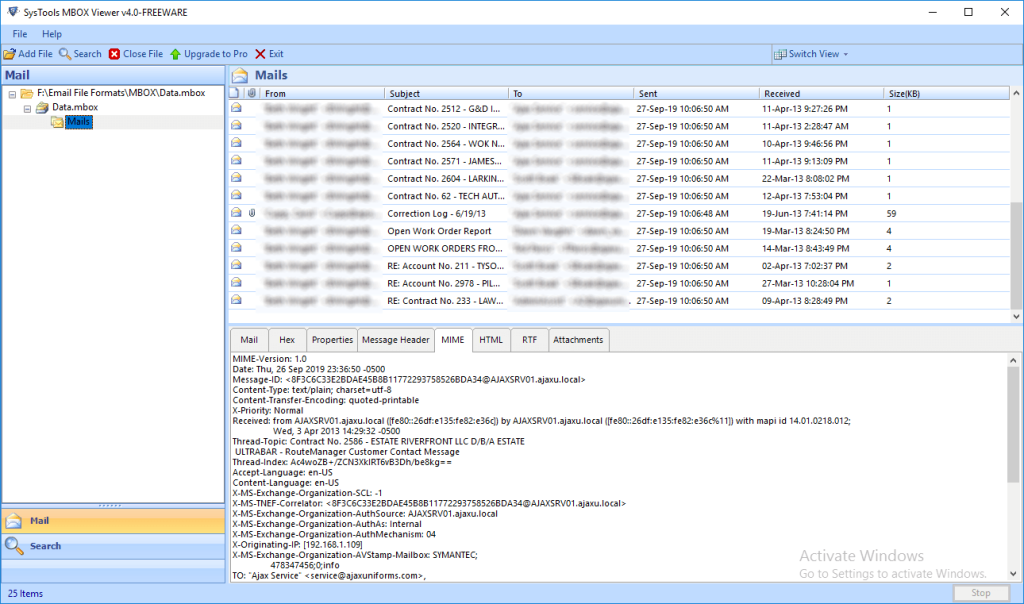 - MIME: With MIME mode, one can easily explore MBOX email details like content-type, return path etc.