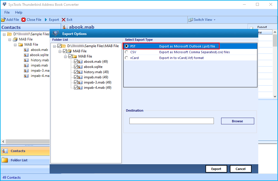 Next, Select Required File Types: abook.mab, history.mab or impab.mab and Open MAB File